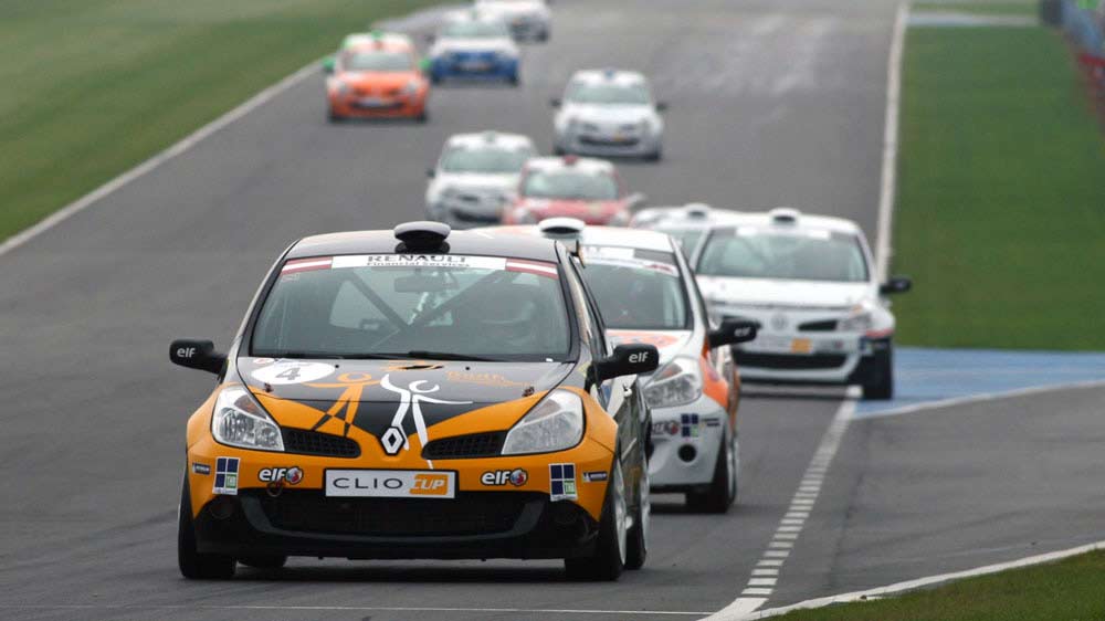 Das Rennfahrerteam von Youth for Human Rights wirbt bei Clio-Cup-Meisterschaft für Menschenrechte